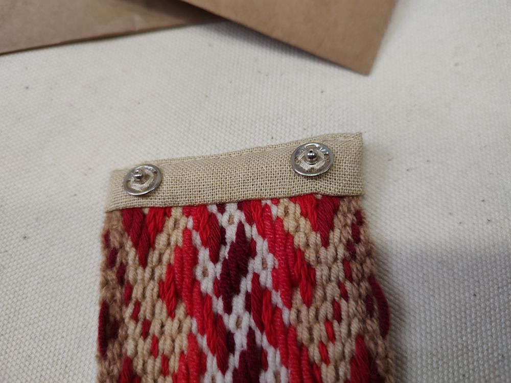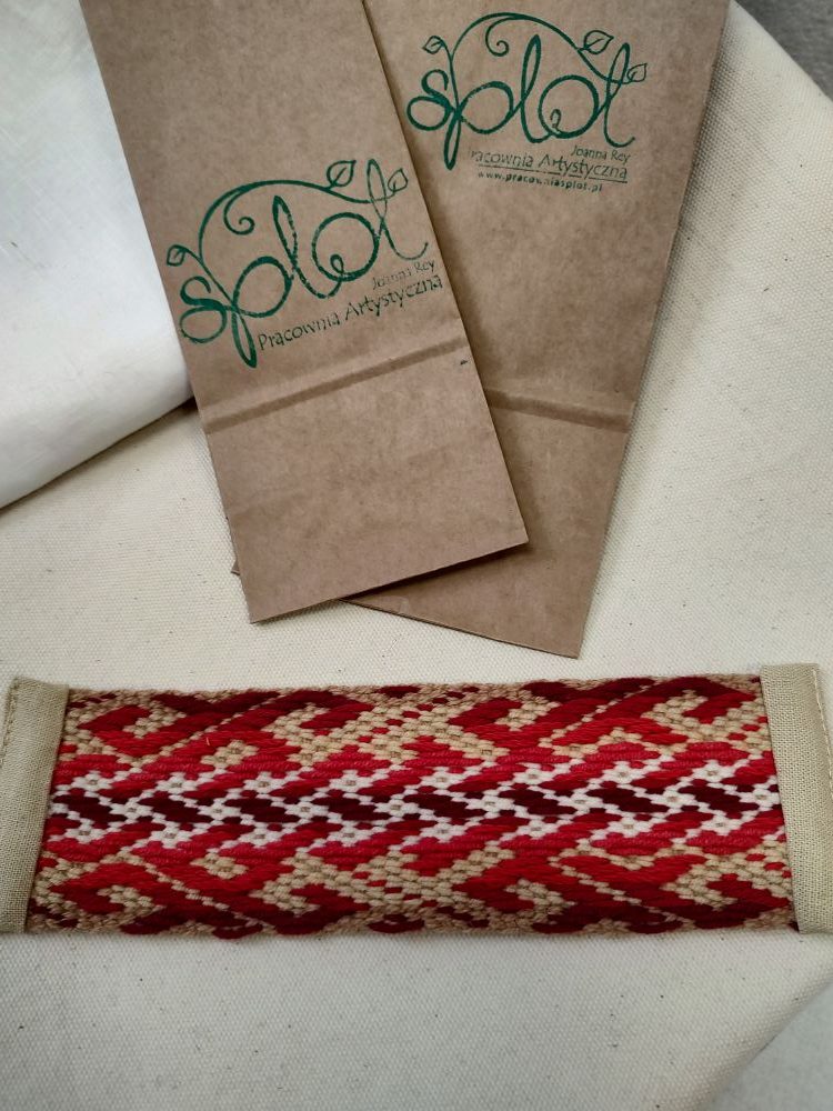 Bransoletki z ręcznie tkanych krajek obszyte lnem lub bawełną, by zabezpieczyć końcówki. Zamknięcie na zatrzask przyszyty w taki sposób, by metal nie dotykał skóry (cenne dla alergików!).